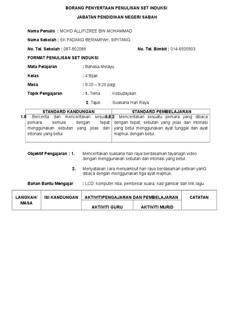 Contoh Set Induksi Yang Menarik Untuk Bahasa Melayu Jorynnewsmrtn